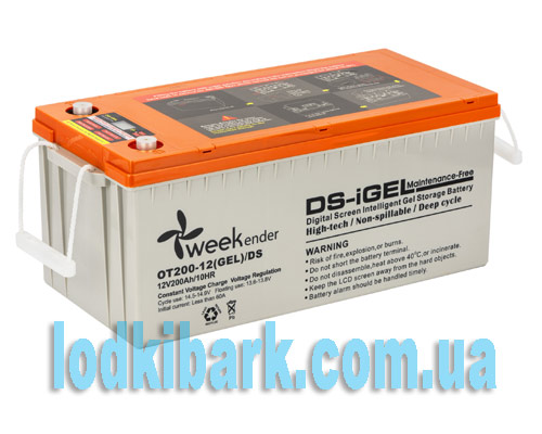 iGEL 200 Ah выдерживает глубокий полный разряд (до 10.5V) при достижении которого будет подан звуковой сигнал тревоги с автоматическим отключением аккумулятора, возобновление работы возможно только после подзарядки. Гелевые аккумуляторы Weekender DS-серии оснащены LCD-дисплеем на лицевой панели, который позволяет следить за напряжением аккумулятора, уровнем заряда, а также количеством дней в эксплуатации. Несмотря на то, что рекомбинация газов у GEL аккумуляторов очень высокая 96-98% она не абсолютная и по прошествии десятилетия все же возможна потеря определенного количества электролита. Под крышкой размещены шесть контейнеров с силикагелем, долив его в банки вы не только сможете восстановить объем, а "расшевелите" аккумулятор добавив ему несколько лет жизни и нормальной эксплуатации.